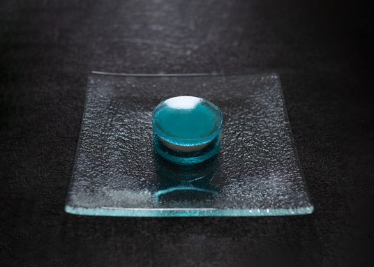 冷たく静かな空気をとじこめた、ほんのりレモン風味の薄青い錦玉で、ブールサレの練りものをサンド。フレッシュバターの静かな香りが、温度とともに浮かび上がる、まるで空をひとかけら口に運ぶような体験を。