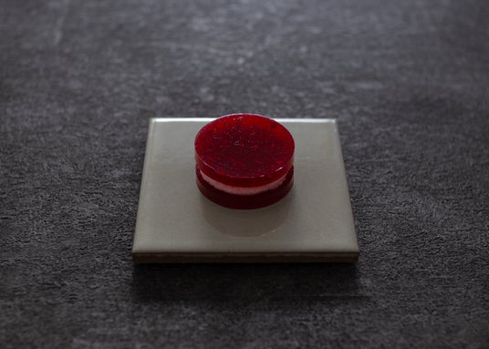 ねっとりとした錦玉の食感と酸味が静かに響く。フランボワーズだけで仕立てた赤。 しっとりと光を透かす錦玉と、果実のクリームをそっと挟んで。 強くて、やわらかくて、甘い-- 冷たい太陽です。