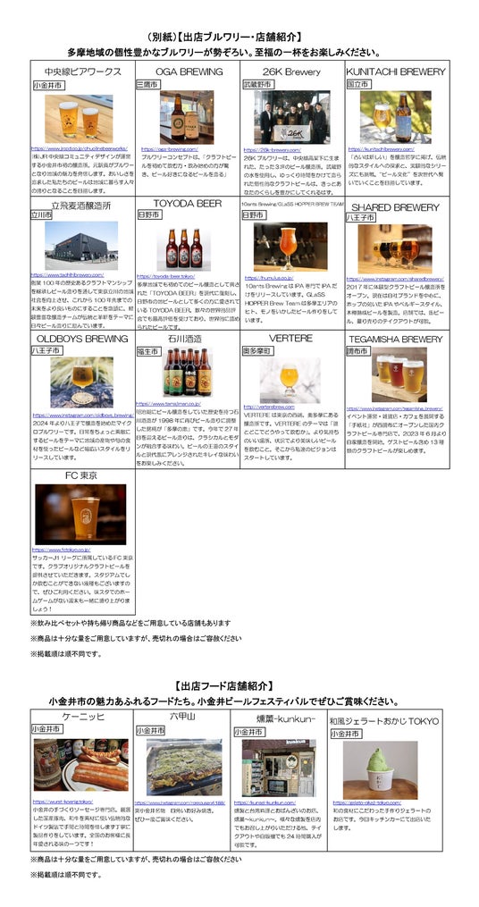 対象店舗:「小金井ビールフェスティバル2025」全出店店舗