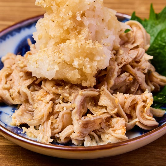 後味はさっぱりと軽やかな酢もつをたっぷりの大根おろしと一緒に。