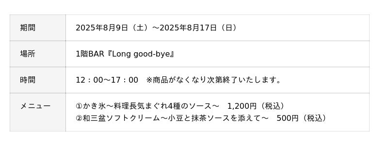 ◆当ホテルでは同時期に、かき氷とソフトクリームの販売も行っております。