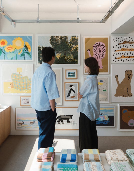 今回のポップアップストアでは、タオルや靴下などのファブリック雑貨からラグ・アートポスターまで幅広いアイテムが一堂に揃います。やわらかなタッチと落ち着いた色彩で描かれた動物キャラクターたちが特徴で、さりげなくかわいいデザインは大人にも取り入れやすく幅広い世代に支持されています。