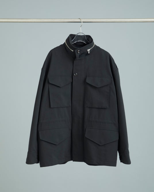 “ミリタリーアイテムを上品に着る”というイメージから実現したこのアイテム。エポレットやポケットなど M65 タイプの特徴的なデザインをキープしつつ、素材やシルエット、ディテールのバランスに変化をつけることで、ドレッシーなアイテムとも相性の良い一着に。スーツやジャケットの上に羽織ることにより、スポーティさと上品さを兼ね備え、今季のテーマでもあるマッシュアップを体現する新鮮なスタイリングになります。
