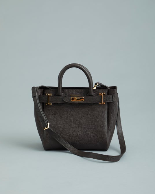 <sita parantica(シータパランティカ)>オリジナルの金具がアクセントになったレザーバッグをスクエア型で別注。トレンドのブラウンに高級感のあるゴールドの金具がアクセントになっています。