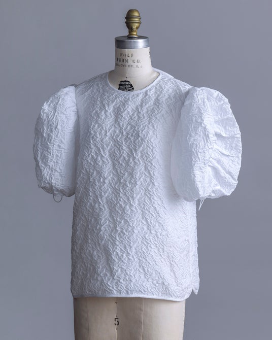 立体的なフォルムとフェミニンなディテールが魅力の「AMARI TOP」ブラウスに、華やかなマトラッセ素材を採用。
