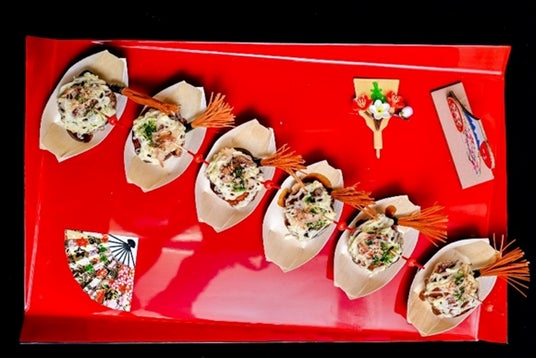 鶏肉のミンチをたこ焼きの粉でつなぎ合わせた生地を使って揚げ団子を作り、照り焼きソースや中国のマヨネーズなどを組み合わせて仕上げました。中国料理の技法に日本の伝統を融合させた、まるで見た目はたこ焼きのようなユニークな創作料理です。
