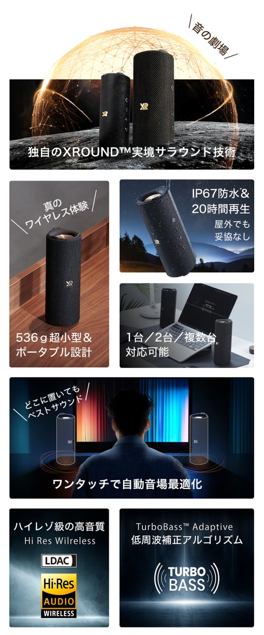 コンパクトとは思えない、迫力と深みのあるサウンド。その中核には、XROUND独自のハード×ソフト融合技術が息づいています。