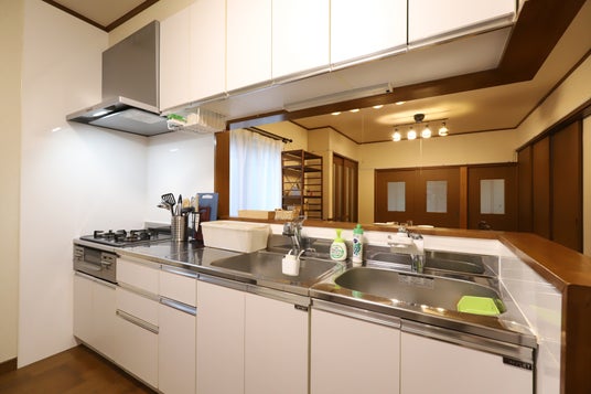 1Fのメインキッチンでは食器や調理器具など、食材を用意するだけですぐに料理ができる充実の設備が整っています。