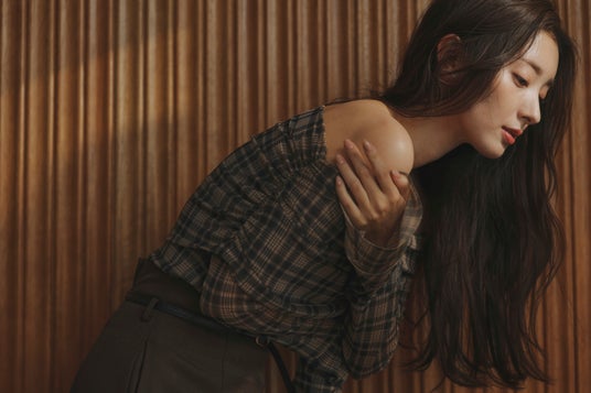 シアー×チェック柄の融合で抜け感たっぷりな大人オフショルに。