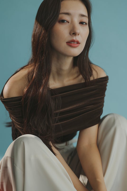 ベロアの艶が引き出す、静かに華やぐフェミニンスタイル。