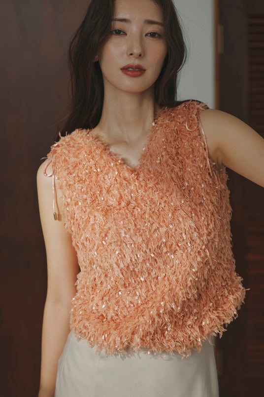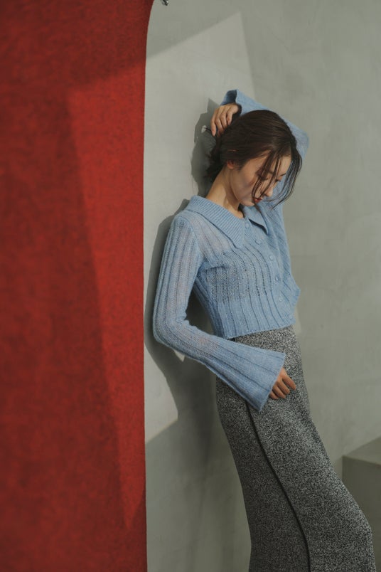 落ち感のあるフェザートップスと動くたびに揺れるフレアスカートで、余韻まで美しく。