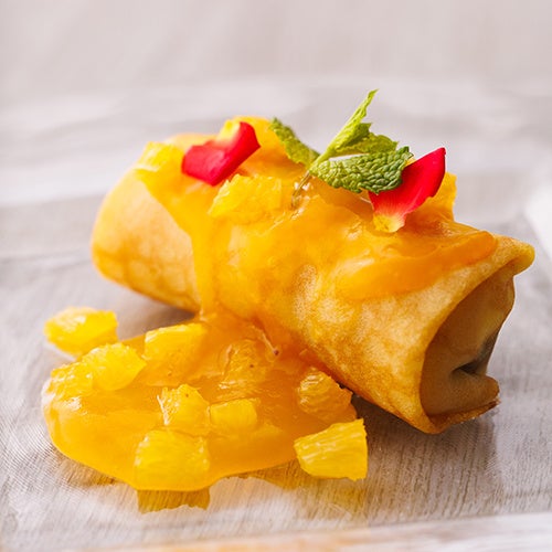生のオレンジをふんだんに使った甘酸っぱいソースと和風クレープの抜群の相性は一度食べたらやみつきになるはず。
