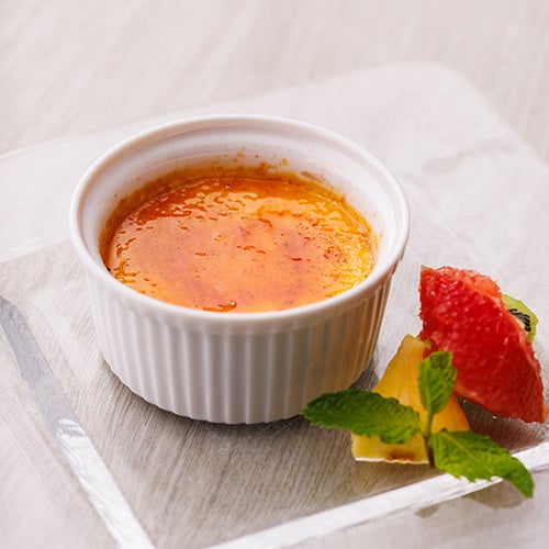 11月 あんこのクレームブリュレ器の容器に木下製餡のあんこを敷き詰め、上には彩たまごを使ったクレームブリュレのとろける舌触り。