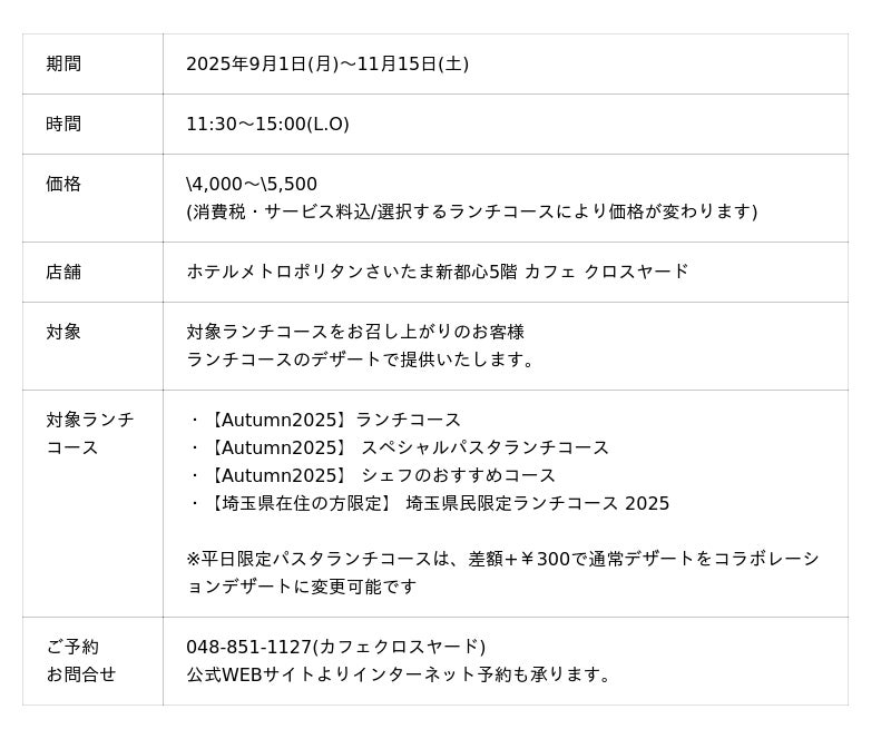 2025年9月1日(月)~11月15日(土)までの期間限定です。