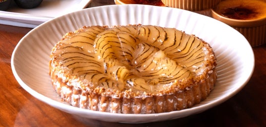 クレーム・ダマンド(アーモンドクリーム)の上に洋梨を並べて焼きこんだフランスの伝統菓子。パートシュクレ生地のサクサクした食感と柔らかい洋梨との一体感も魅力です。