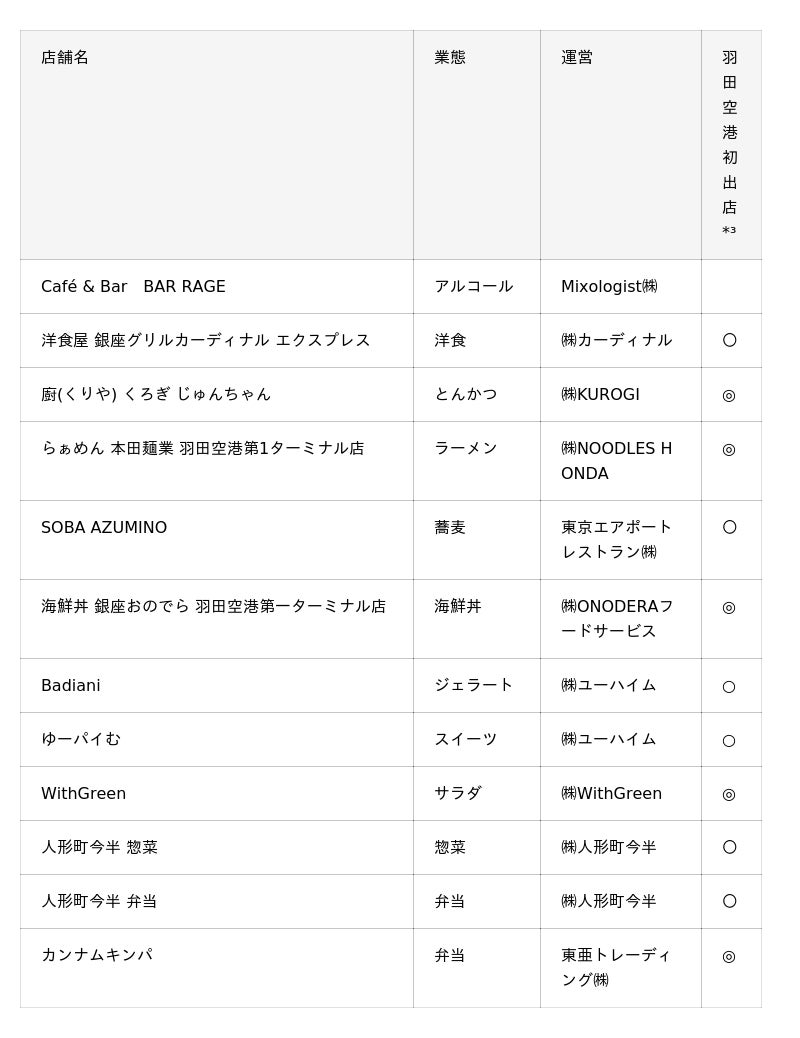 *³◎運営会社として初出店 〇当該店舗業態として初出店