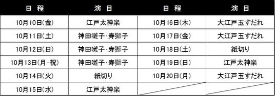 演目:神田囃子・寿獅子(ことぶきじし)、紙切り、江戸太神楽(えどだいかぐら)、大江戸玉すだれ