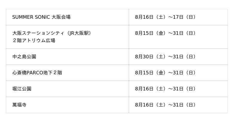 都市型音楽フェスティバル「SUMMER SONIC」の大阪会場(万博記念公園内)にて、大型アート作品の野外展示を行います。