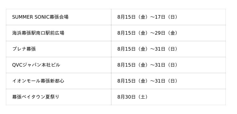 SUMMER SONIC幕張会場前、幕張ベイタウンなどを舞台に、アート作品の展示を行います。