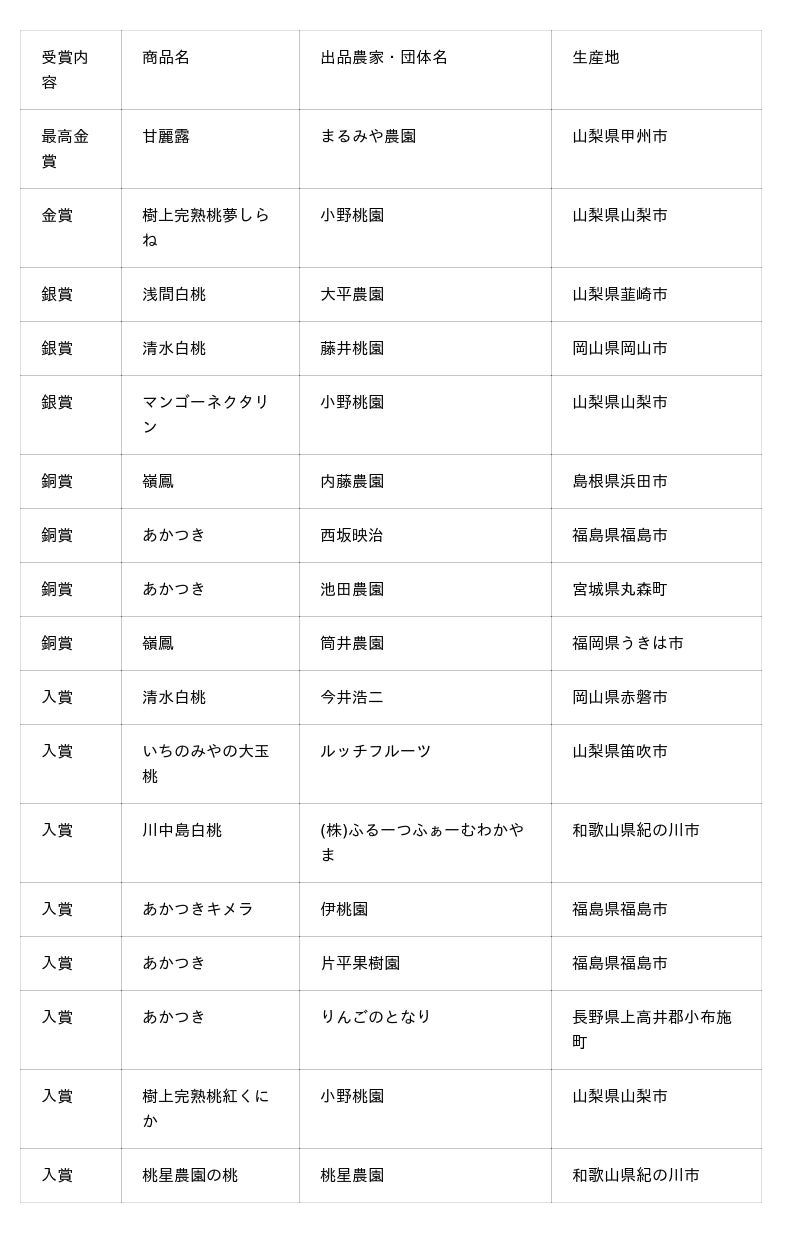 おいしい「桃」NO.1が決定!日本一は、山梨県甲州市「まるみや農園/甘麗露(アマレーロ)」が最高金賞を獲得!