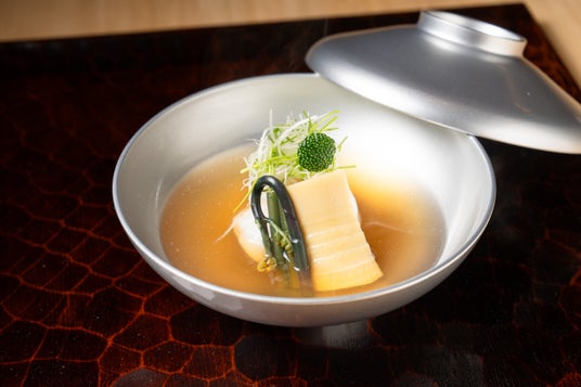 命の源泉「黄金の一番出汁」: 毎朝、時と温度を徹底管理し、丁寧に、丁寧に引く一番出汁。その透き通った黄金色の液体は、すべての料理の味わいを支える、私たちの命そのものです。