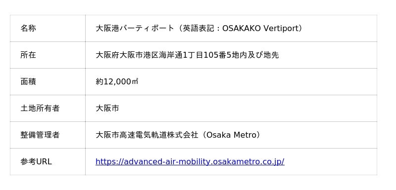 Osaka Metroが整備した空飛ぶクルマ専用 「大阪港バーティポート」にて2025年9月15日(月・祝)よりデモフライト見学会を実施