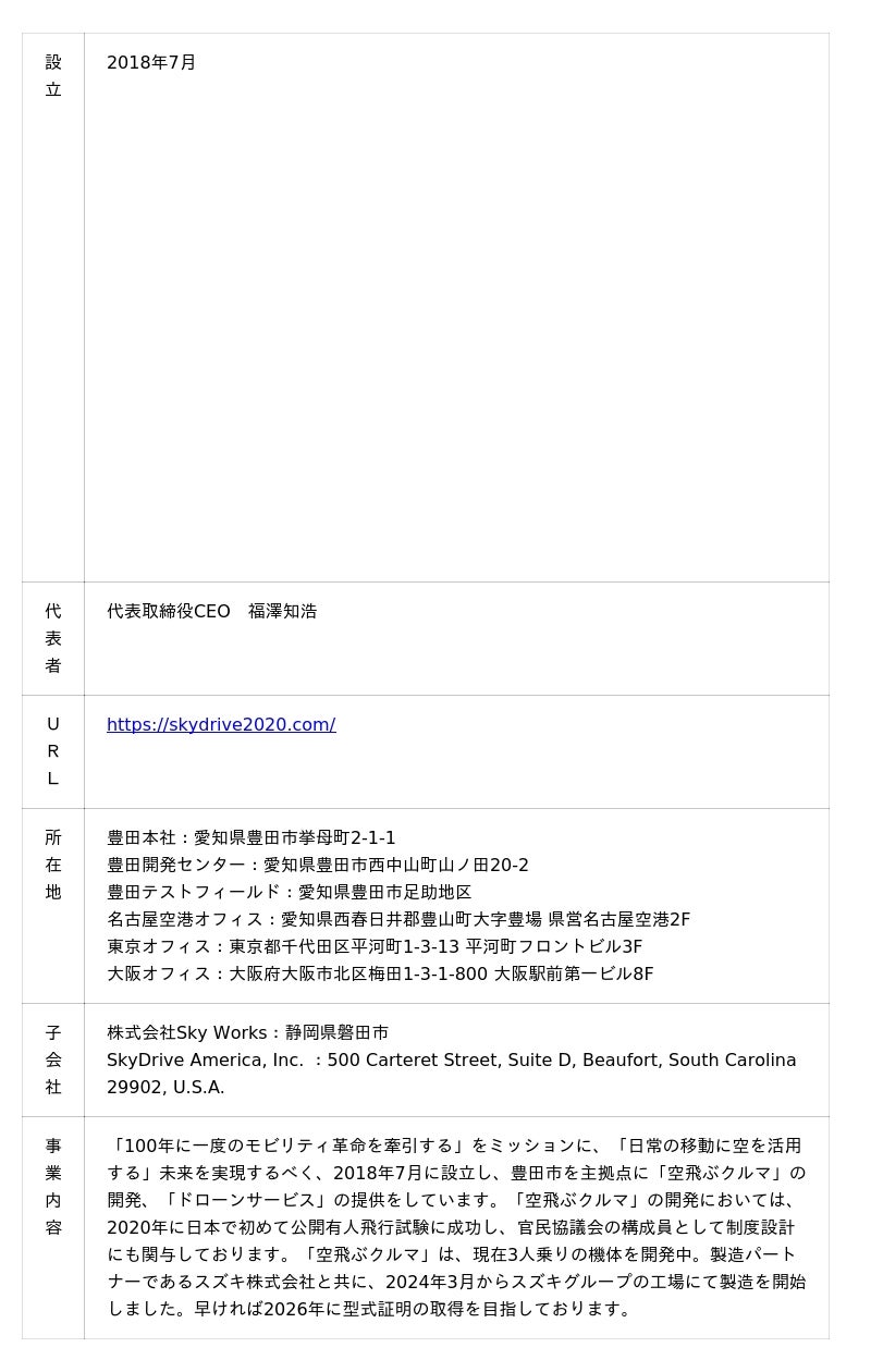 このデモフライトは、2025年大阪・関西万博会場内での公開フライト(※2)を開始した同機体「SKYDRIVE(SkyDrive式SD-05型)」にて実施するものです。