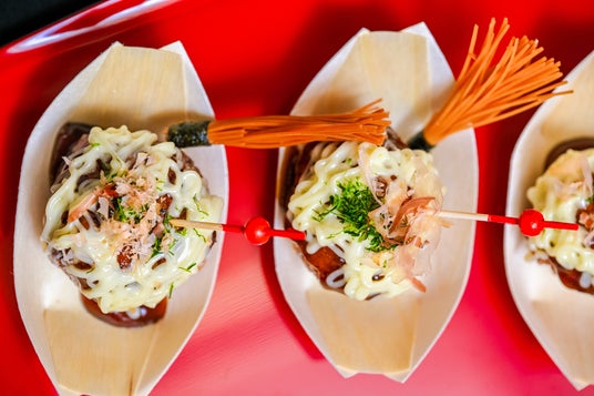 鶏肉のミンチをたこ焼きの粉でつなぎ合わせた生地を使って揚げ団子を作り、照り焼きソースや中国のマヨネーズなどを組み合わせて仕上げました。中国料理の技法に日本の伝統を融合させた、まるで見た目はたこ焼きのようなユニークな創作料理です。