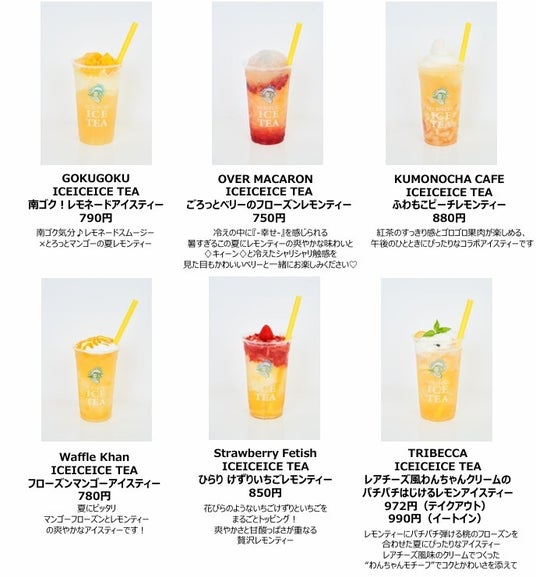 コラボメニューは「キリン 午後の紅茶 レモンティー」をベースに使用し、フローズンやソフトクリーム、フルーツ、クラッシュアイスなど、各店の個性を活かしたトッピングで、夏の暑さにぴったりの爽やかで華やかなアイスティーに仕上げております。