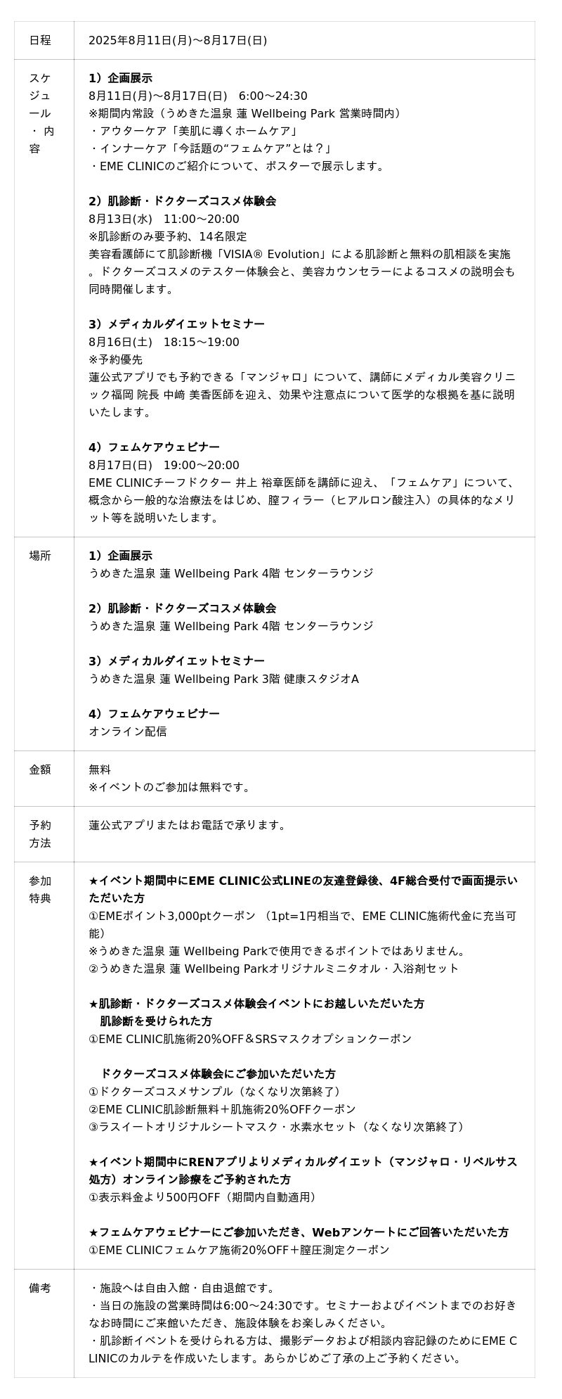<EME CLINIC×うめきた温泉 蓮 Wellbeing Park WellBeautying Week開催概要>