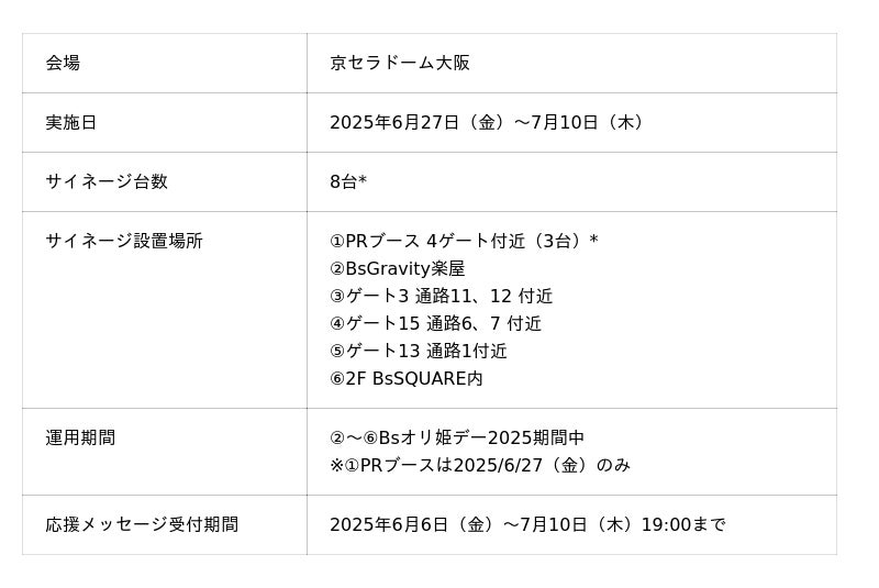 京セラドーム大阪で開催された「Bsオリ姫デー2025」期間中、BsGravityへの応援企画として#推しメッセが実施されました。