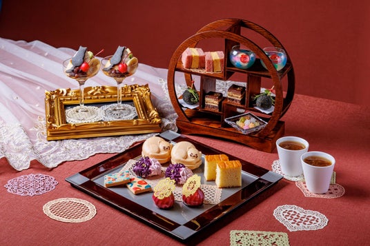 【京都】レトロでモダン、和と洋をMixしたスイーツや懐かしさ溢れる黒猫アイコンのプリンアラモード!真っ赤な椿の花をイメージしたスペシャルデザートもご用意『はんなり大正浪漫アフタヌーンティー』