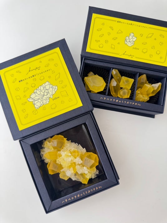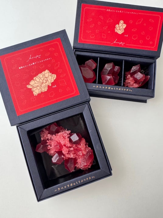 ハラペコラボは、福岡を拠点に活動する女性中心のクリエイティブブランド。「アートと食の融合」をテーマに、鉱物のように美しい琥珀糖『こうぶつヲカシ』や、色彩と素材にこだわったスイーツ・ケータリングを展開。開発・制作・パッケージデザインまですべてを手作業で行い、“どれひとつとして同じものはない”唯一無二"の美しさと想いを届けています。有名ゲーム、有名アニメとのコラボ作品、百貨店催事、雑誌・TVなど多数メディアでも話題に。贈り物として、また自身のライフスタイルを彩るアイテムとして、全国のファンから支持を得ています。【会社概要】
