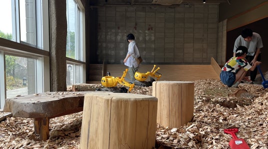 自然と人との関わりを改めて感じていただけるロケーションの「aem」は、従来の知識学習型ミュージアムとは一線を画し、「自然になずさう」というコンセプトのもとで運営しています。キッズエリアでも、できるだけ自然を身近に感じられるような工夫を随所に取り入れ、お子さまが遊びながら自然とのつながりを体感できる空間づくりを目指しています。
