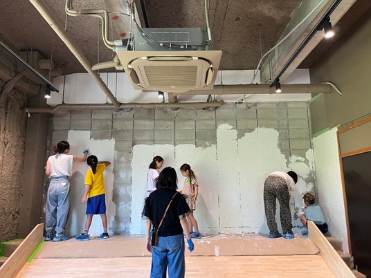 7月に開催された「漆喰ワークショップ」の模様