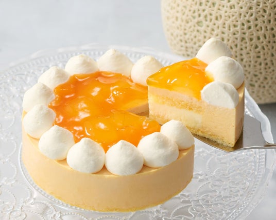 北海道産生クリームとイタリア産マスカルポーネを合わせた、なめらかなレアチーズを上層に。下層には、北海道産赤肉メロンのピューレを練り込んだベイクドチーズケーキを重ね、さらに赤肉メロンのスポンジクラムでやさしく包み込みました。赤肉メロンのふくよかな甘みと、チーズの奥行きあるコクが織りなす、夏にふさわしい華やかな味わいをお楽しみいただけます。