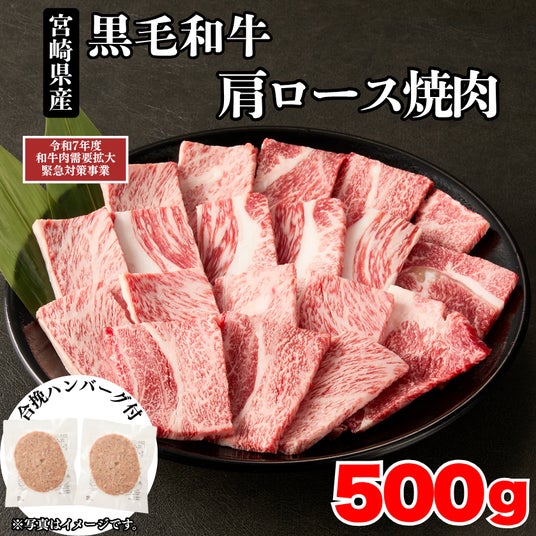 【畜産農家応援】黒毛和牛肩ロース焼肉500g(合挽ハンバーグ付き)焼肉もハンバーグもどちらもお楽しみいただけます!
