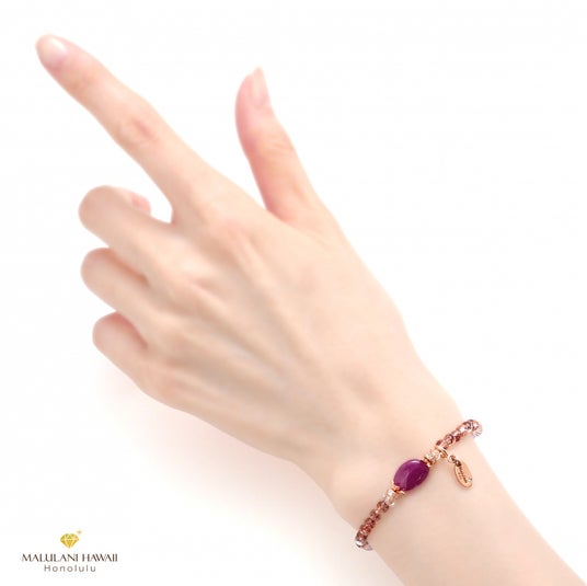 奇跡の石スーパーセブンをルビーと合わせ、エレガントに仕立てたブレスレット。