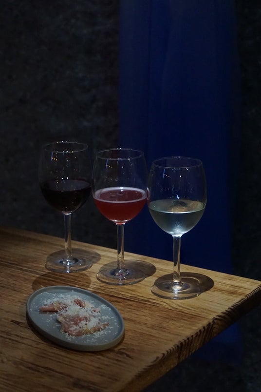 期間中併設するバーでは、本展にあわせて片寄涼太とともにセレクションした国産ナチュラルワインを中心に週替わりで提供。片寄が好きなおつまみから着想を得て、人肌でとろける曽山ポークにパルミジャーノチーズ、トリュフオイルをあわせた生ハムをペアリングとしてお楽しみください。また、本展示期間中限定で、ワイン3種飲み比べ+オリジナルフード1品のコースもご用意しております。