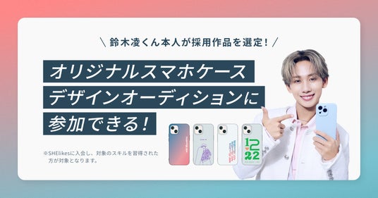 女性向けキャリアスクール「SHElikes(シーライクス)」を運営するSHE株式会社(所在地:東京都港区、代表取締役 CEO/CCO:福田恵里)は、2025年7月よりSHElikesのアンバサダーに就任した鈴木凌さんとの共創プロジェクト第一弾として、「オリジナルスマホケースデザインオーディション」を2025年9月1日(月)より開催いたします。