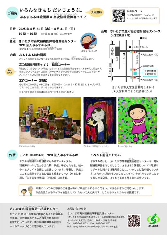【NPOぷるすあるは】絵画展を大宮で開催「いろんなきもちだいじょうぶ。」がテーマ・さいたま市高次脳機能障害者支援センターと共催