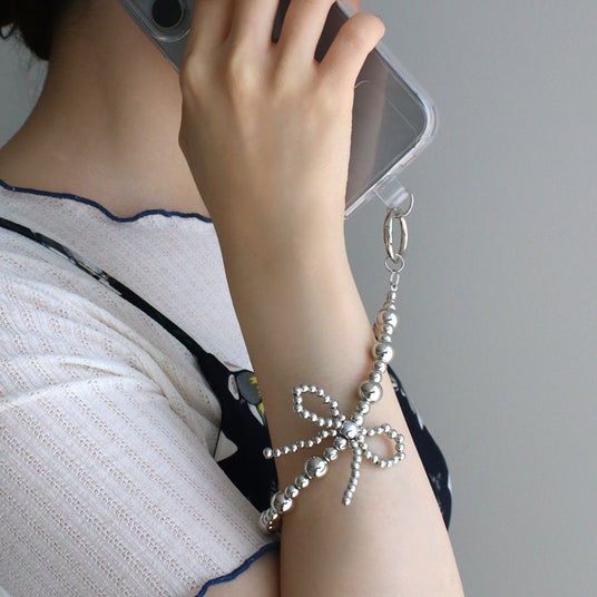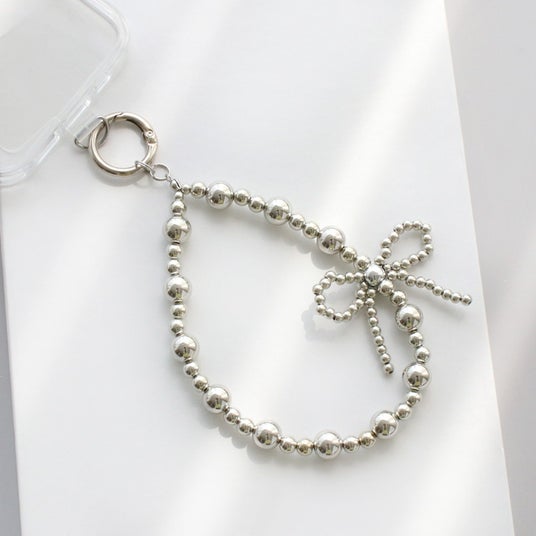 商品名:ホルダー付きスマホストラップ / シルバーパールリボン