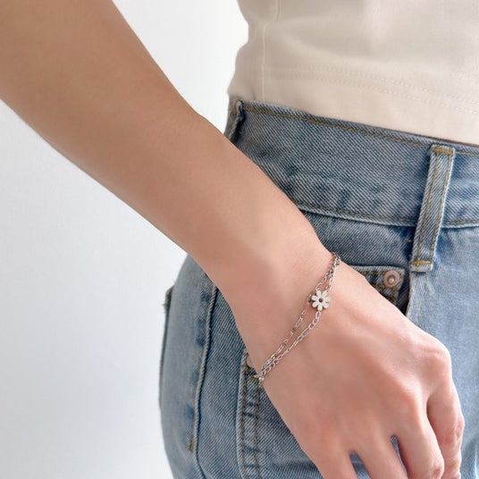 商品名:フラワー2連ブレスレット/ ステンレス