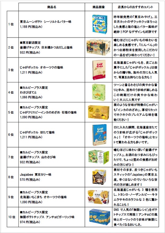 【カルビープラス東京駅店 夏のお土産ランキング ベスト10!】