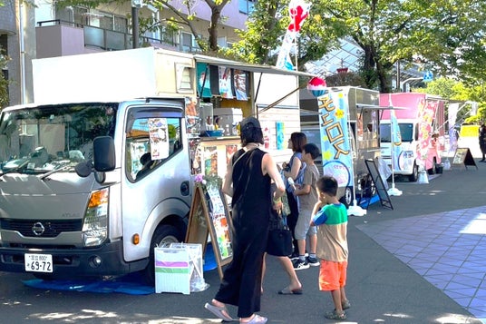 綾瀬駅から東京武道館に続く遊歩道にキッチンカーが登場。かき氷やたこ焼きなどお祭りフードをメインに販売します。