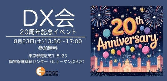 ディスレクシア支援団体の認定NPO法人エッジ(東京都港区 会長:藤堂栄子)が、ディスレクシア当事者によるディスレクシアの人のための会【DX会】20周年記念イベントを8月23日に開催します。