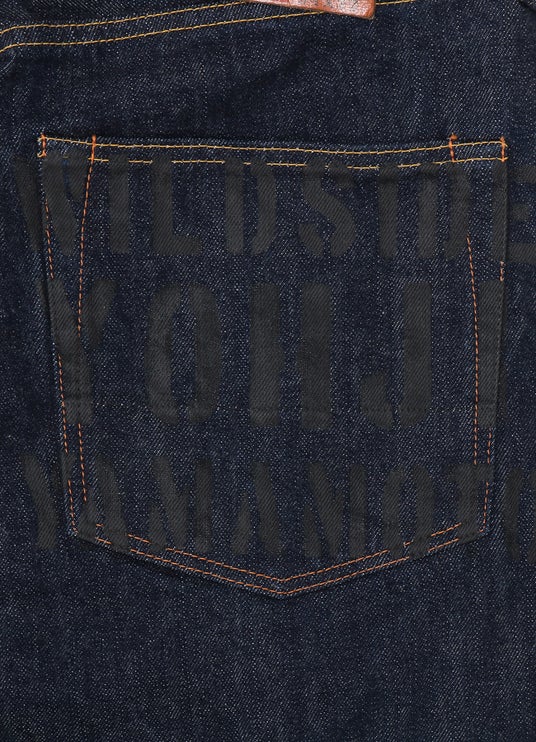 YAMANE INDUSTRIESのストレートジーンズ「Lot.1991 No.2」をベースに、右脚にはWILDSIDEのステンシル、左バックポケットには“Y”を象ったステンシルと印象的なステッチワークを施し、さらに右バックポケットには「WILDSIDE YOHJI YAMAMOTO」のステンシルを配置。ディテールにまでこだわりを詰め込みました。