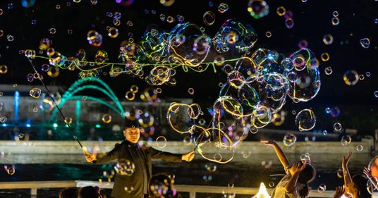 幻想的な光と音に包まれる特別な夜。子どもも大人も笑顔になる、新感覚シャボン玉ショー。