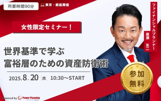 8月20日(水)10時30分より人気講師、廣瀬友二氏による「世界基準で学ぶ富裕層のための資産防衛術」セミナーを開催いたします。