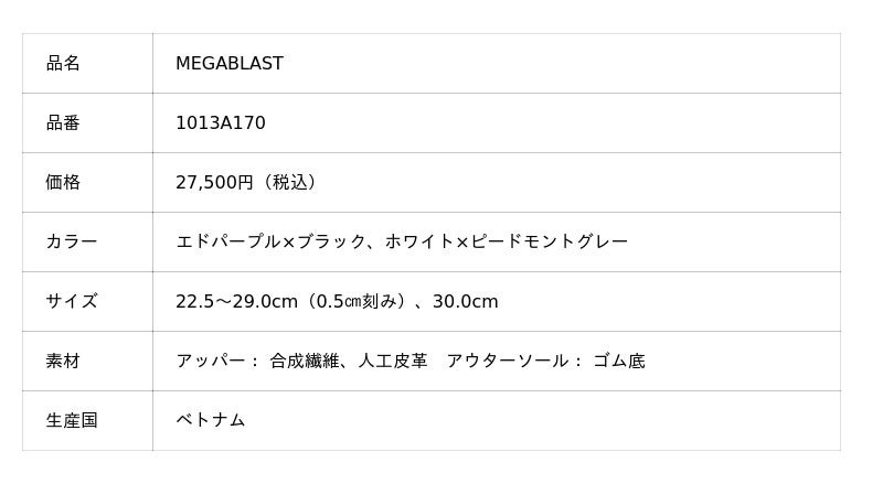「MEGABLAST(メガブラスト)」は、心地よいバウンス感が特徴のランニングシューズで、さまざまな距離とスピードに対応しています。フルマラソンで4時間から5時間の完走をめざすランナーのレース用ほか、カーボンプレートを搭載したシューズをレースで使用するランナーのペース走やジョグといったデイリートレーニング用としてもおすすめです。重量は約230グラム(27.0cm/片足重量)です。